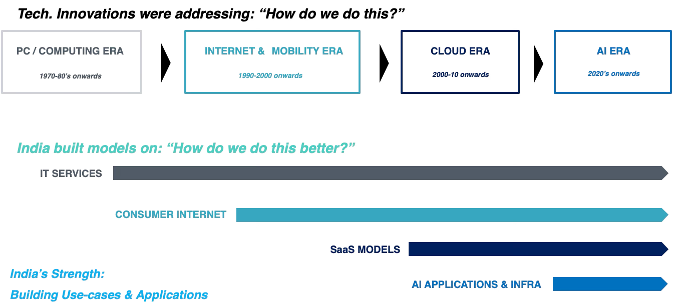 As we enter the AI era, we expect India to play to its strengths once again—building scalable use cases, applications, and increasingly, key layers of the AI application and infrastructure stack.