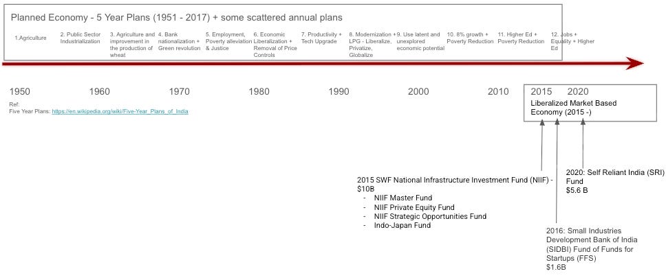 The Self-Reliant India (SRI) Fund was launched in 2020 as part of the Atmanirbhar Bharat Abhiyan (Self-Reliant India Mission) to support Micro, Small, and Medium Enterprises (MSMEs). The fund’s total size is 50,000 crore INR ($5.6B), with 20% funding from the government and 80% from private equity and venture capital funds. Its focus is to provide equity and quasi-equity growth capital to viable, high-potential MSMEs, helping them scale up, innovate, and become national or international champions. The fund is an FOF being implemented by NSIC Venture Capital fund Limited (NVCFL).