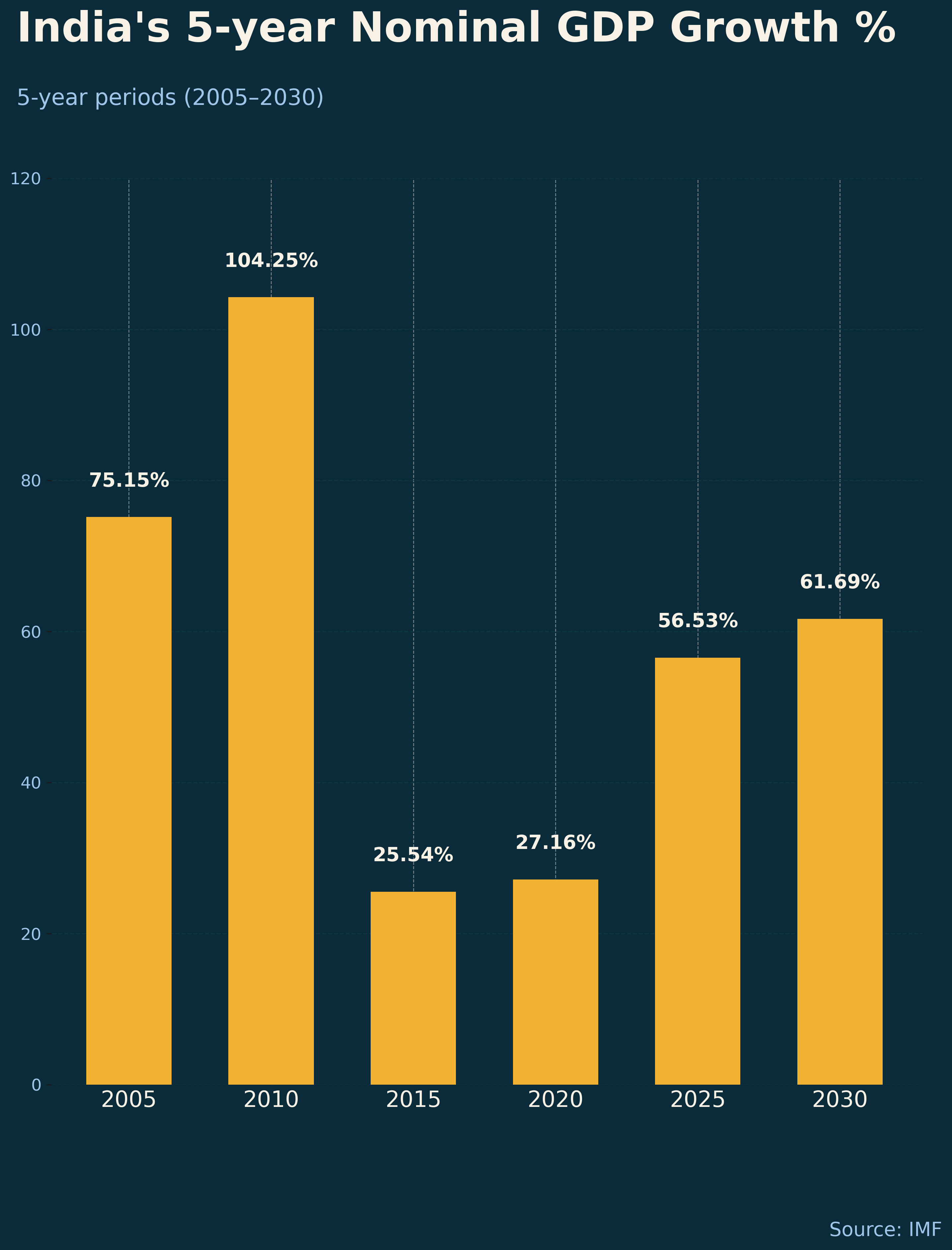 Today, India’s GDP stands at $4.12T, making it the world’s 5th-largest economy and the fastest-growing major economy for the past two years. With forecasts projecting sustained growth above 6% for the next decade, India continues to demonstrate resilience—even amid global protectionism, tariff pressures, and periodic geopolitical conflict, including a brief war with Pakistan.